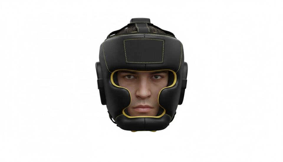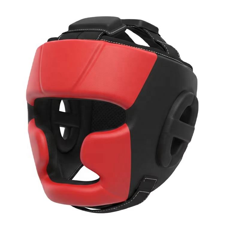 Custom Made Solid Boxing Head Guards-Kickboxing Headgear Double PU Material Full Face Chin Protection Shock Breathable Buckle