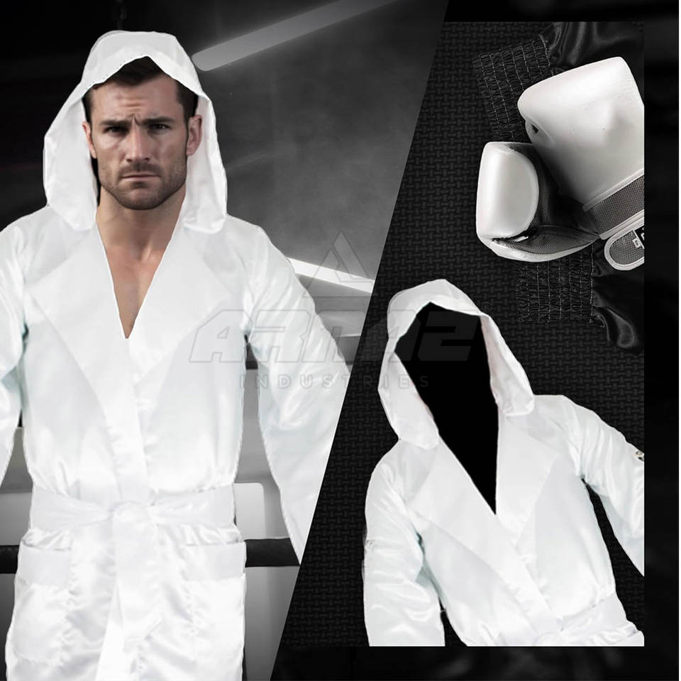 Boxing Robe With Smooth Finish And Custom Branding Available Comfortable Boxing Robe With Hood And Waist Tie For Athletes
