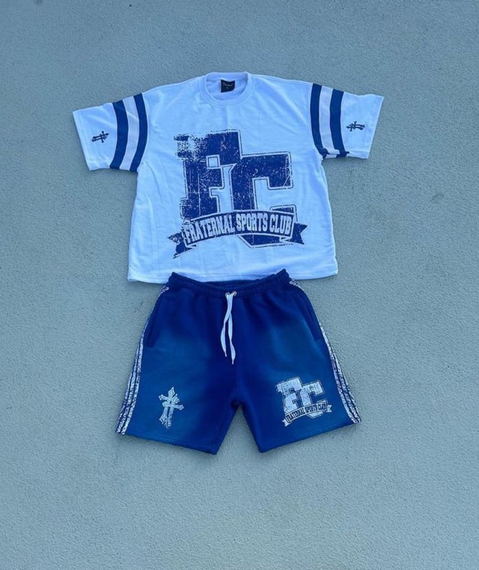 Boxy Fit Street Wear Men's High Quality Screen Printing Summer Short Sets Sun Fade Side Strips Print Custom Shorts