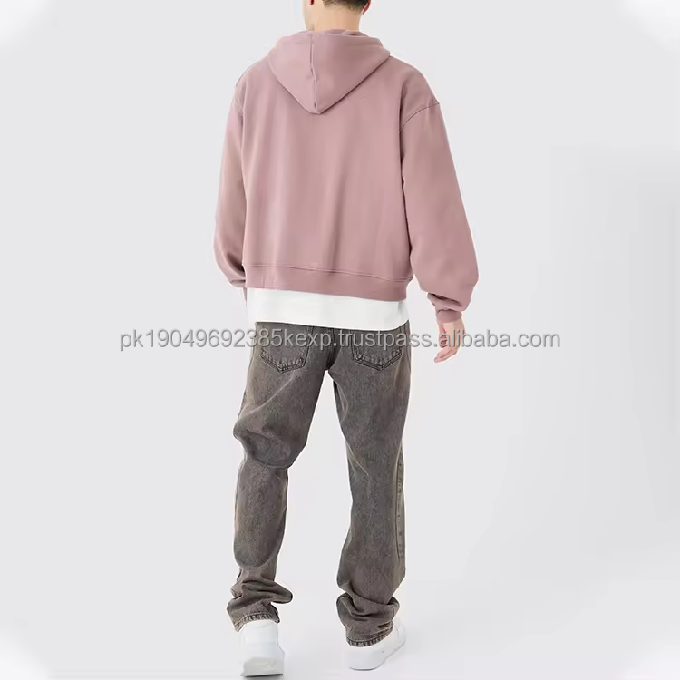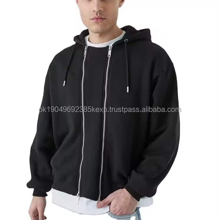 Boxy cropped double zipper hoodie Oversized Boxy Plain Double Zip Through Cropped Men's Hoodie