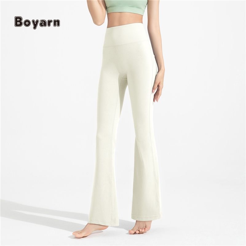 Boyarn Women's High-Waist Hip-Lifting Wide-Leg Fitness Pants Antibacterial Yoga Bell-Bottom Slim-Flared Sports Solid Pattern