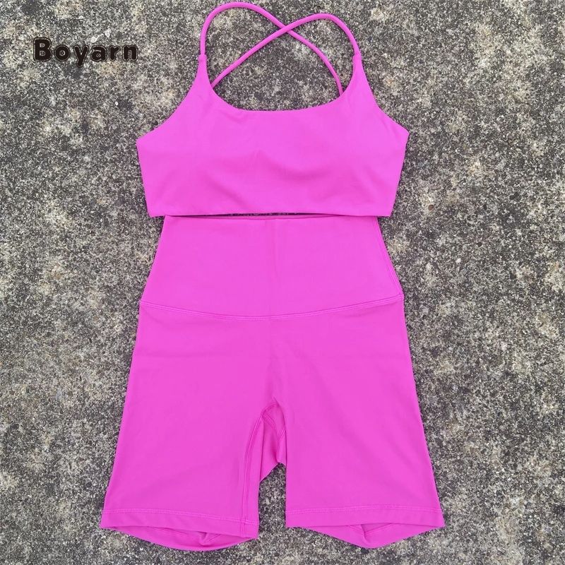 Boyarn Yoga Set Beauty BackTops High Waist Short Legging Cross Back Sports Bra Athletic Women Sports Set
