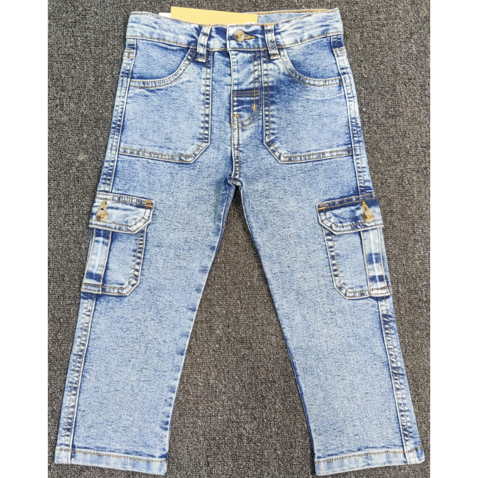 Boys Embroidered Printed Spandex/Cotton Denim Cargo Long Pant 6 Pockets Mock Fly Washed Visible Front/Back Flap Pockets Regular