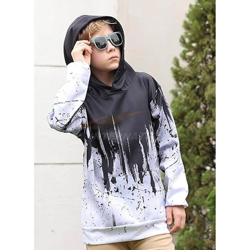 Boys Girls Pullover Hoodie 3D Printed Design Big Pocket Warm Fashion Hoodie for Winter Black and White Print