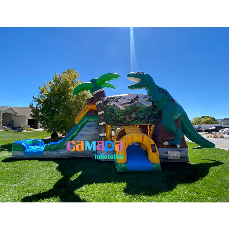 Boys Inflatable Dinosaur Castle with Water Slide Pool PVC Vinyl Backyard Water Slide Bouncer Combo Including Blower Repair Kits