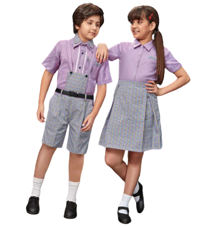 Boys Plain Shirt Checks Shorts and Girls Plain Shirt Checks Pleated Skirt Tie Dress Set for School Uniforms