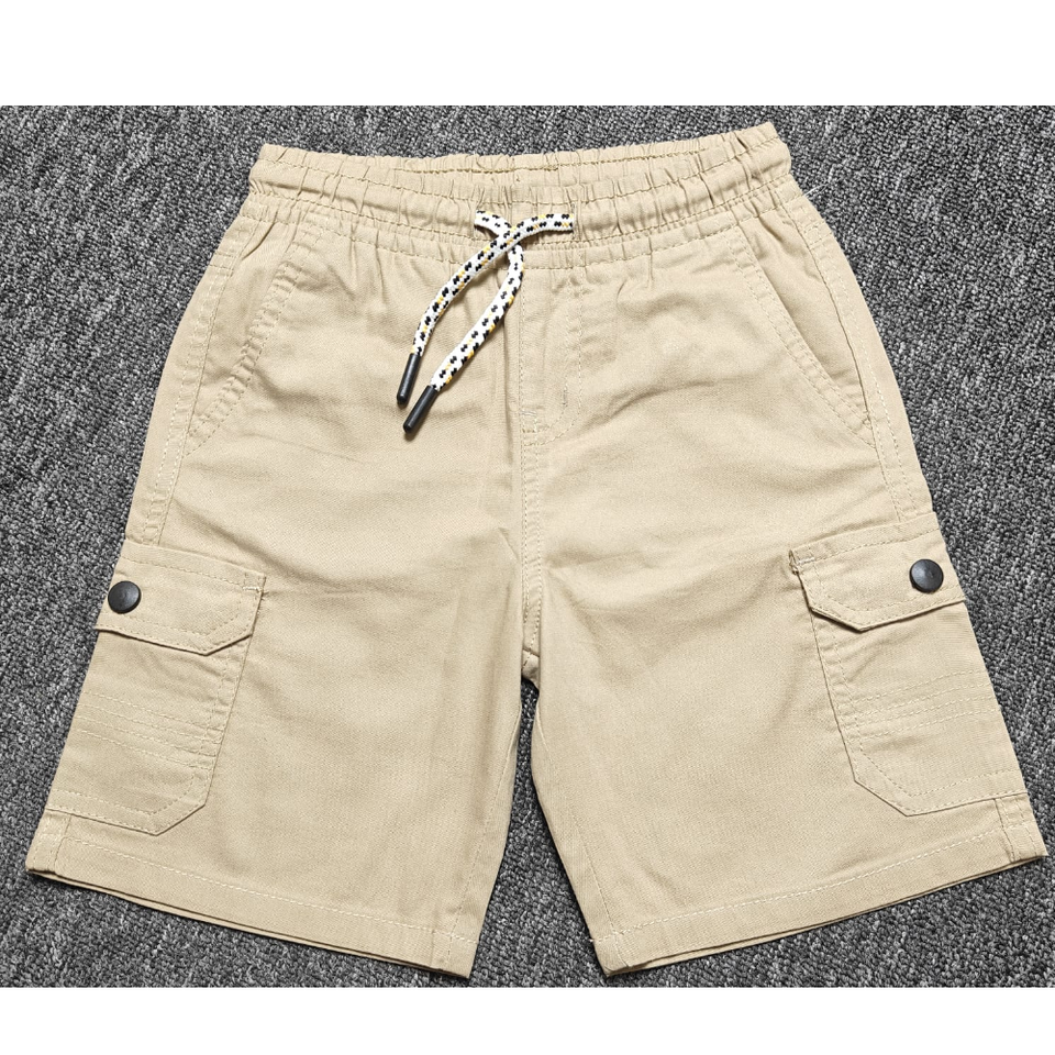Boys Printed 100% Cotton Shorts Elasticated Waist Draw Cord Cargo Pocket Button-Fastened Plain Dyed Machine Washable