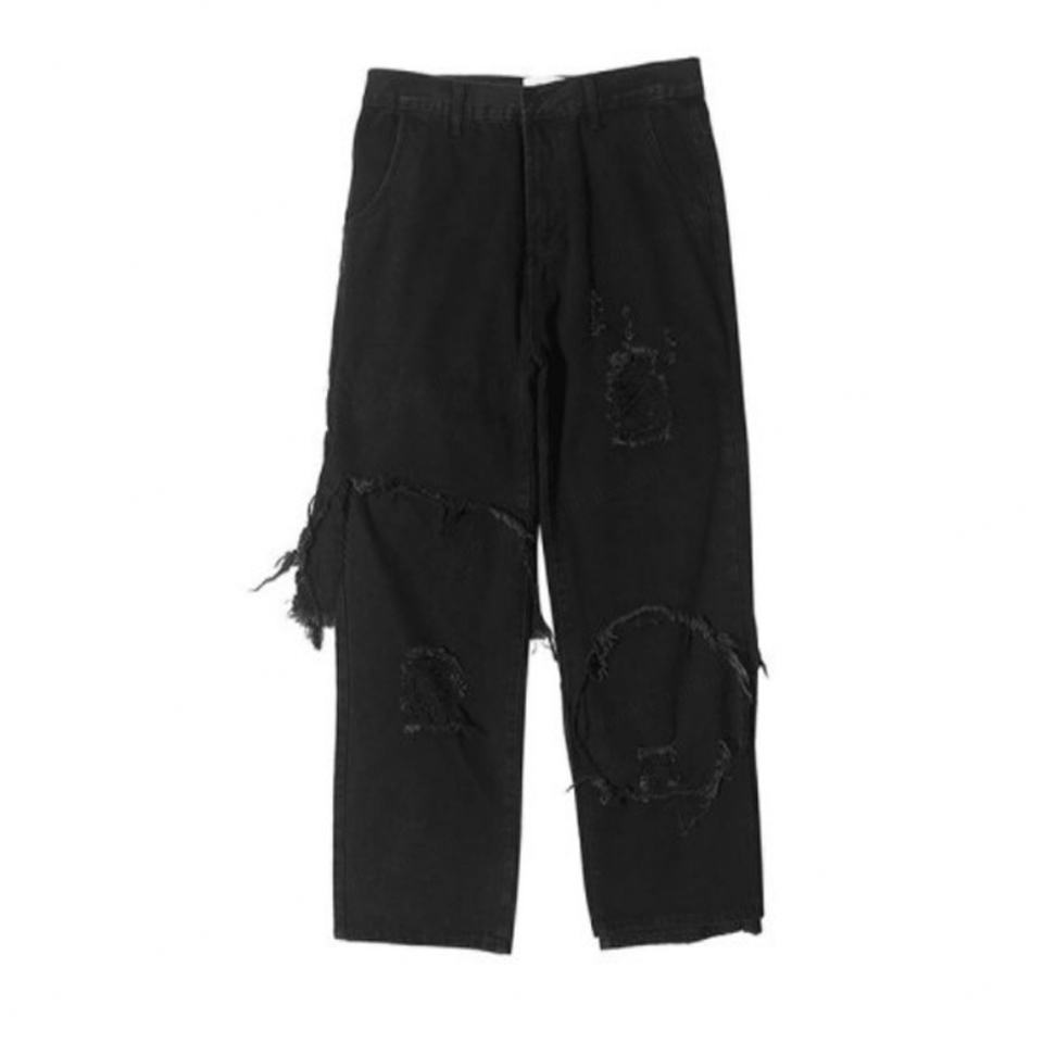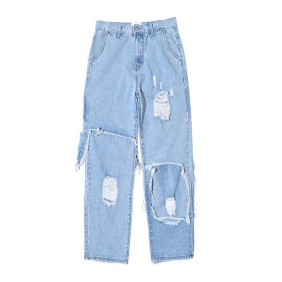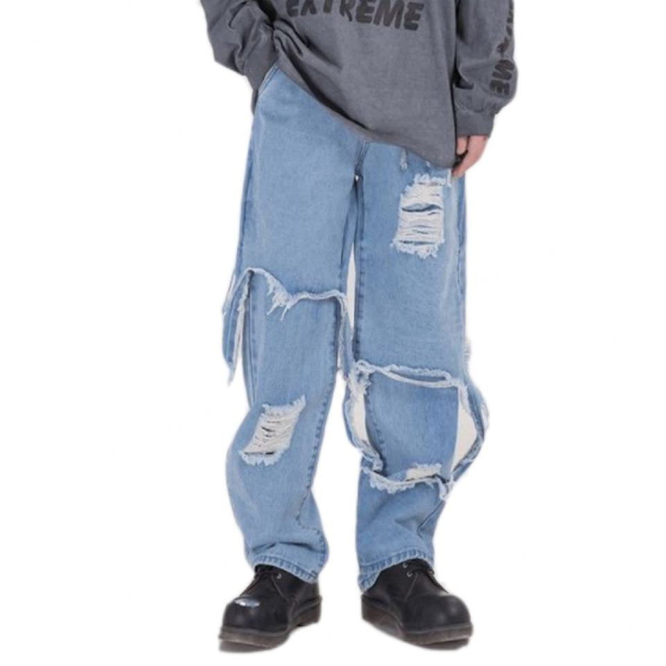 Boys Streetwear Blue Plus Size Loose Destroyed Jeans Menswear Casual Wide Leg Ripped Denim Jeans Trousers for Men