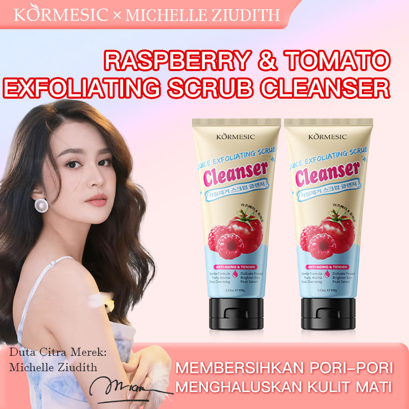 Bpom Approved KORMESIC Wholesale 100g Face Wash Facial cleanser Delicate Brightening Raspberry Tomato Exfoliating Scrub Cleanser