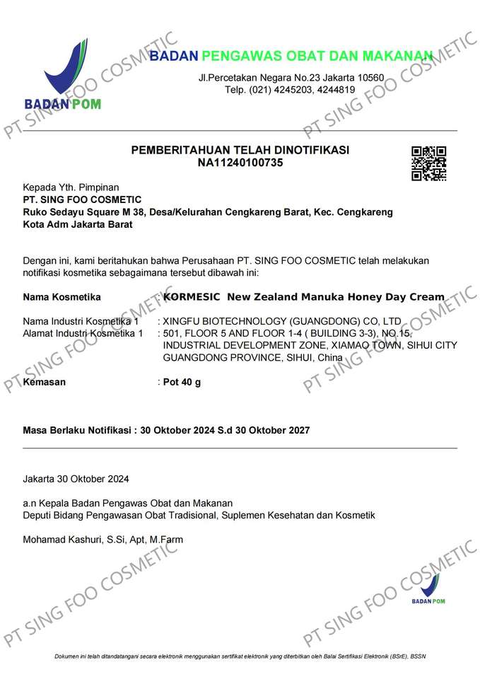 Bpom Approved Kormesic 40g Organic Anti-Wrinkle Day Cream New Zealand Manuka Honey Lightening Moisturizing Face Cream Retinol