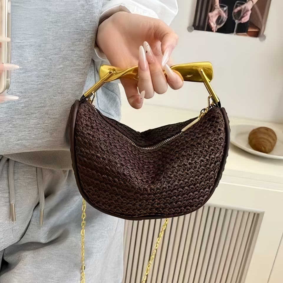 Braided Adjustable Chain Strap One Shoulder Bag Durable Portable Metal Handle Polyester Lining Candy Pattern Cross-body Bag