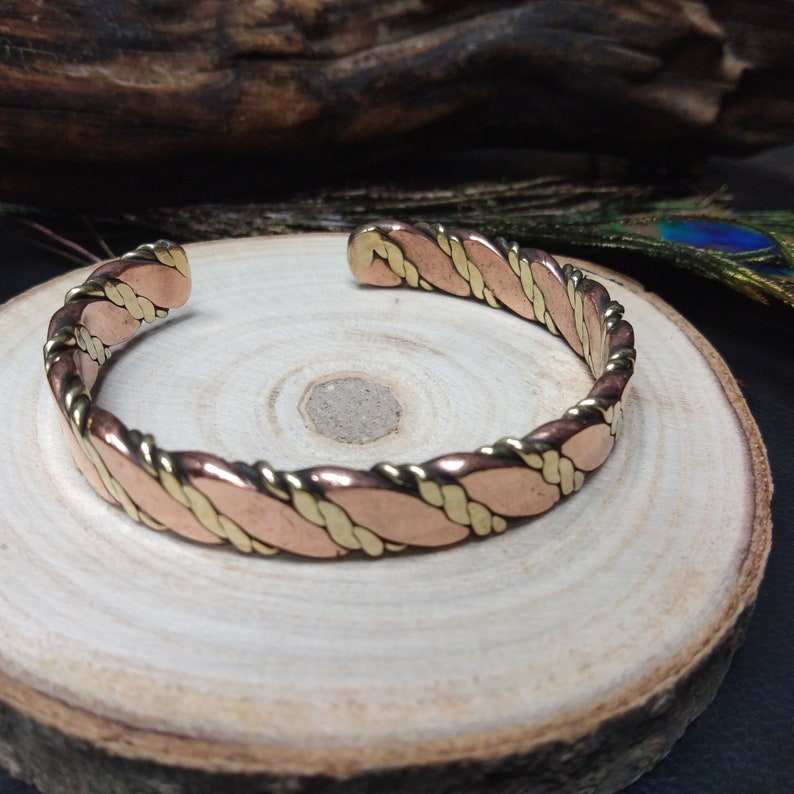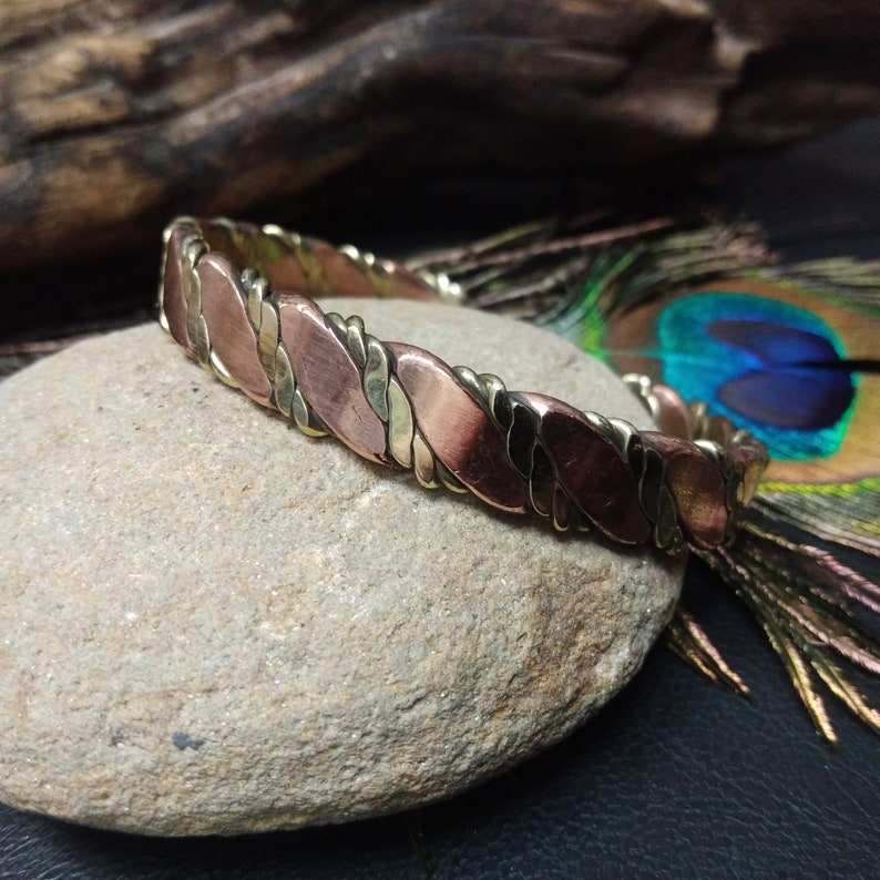 Braided Copper And Brass Flat Bracelet|Therapeutic Copper And Brass Cuff Minimalist Unisex Copper And Brass Bracelet