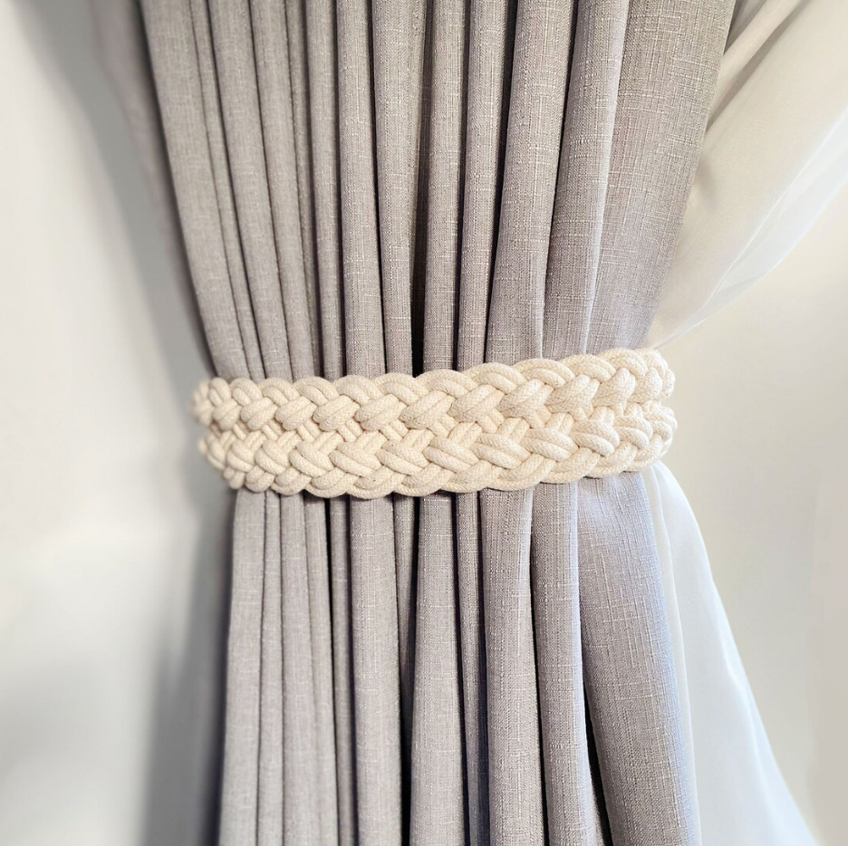Braided Cotton Curtain Tie Back, Bohemian Chic Curtain Tie Back, Coastal Curtain Tie Back Reef Twisted Rope Curtain Tiebacks