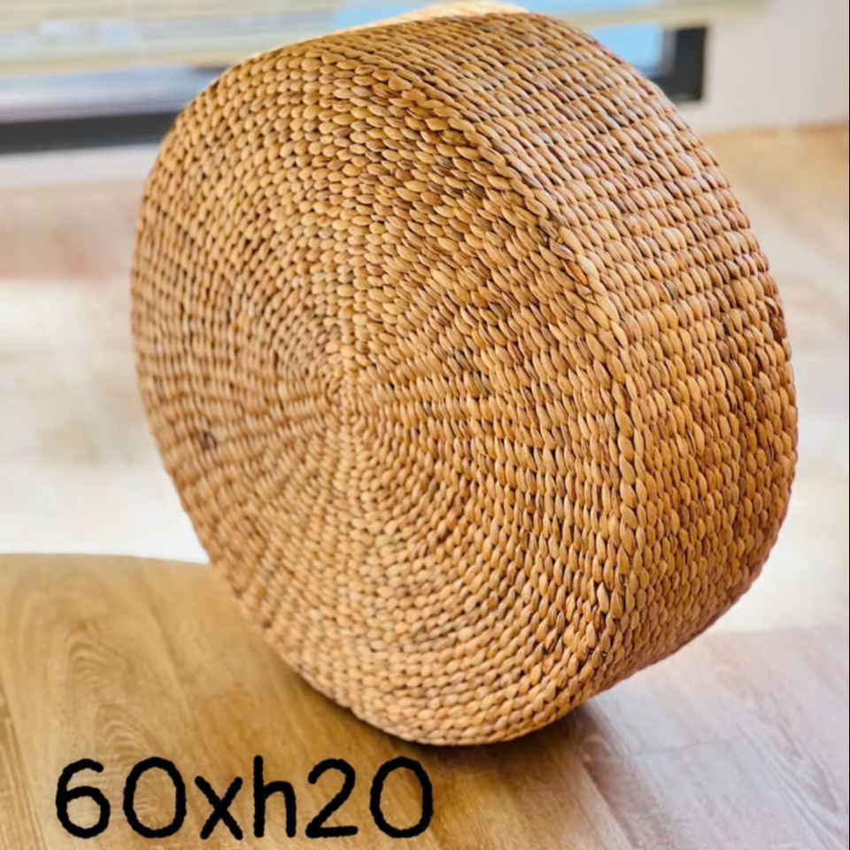 Braided Water Hyacinth Floor Cushion Handmade Round Ottoman Stool for Home Decor