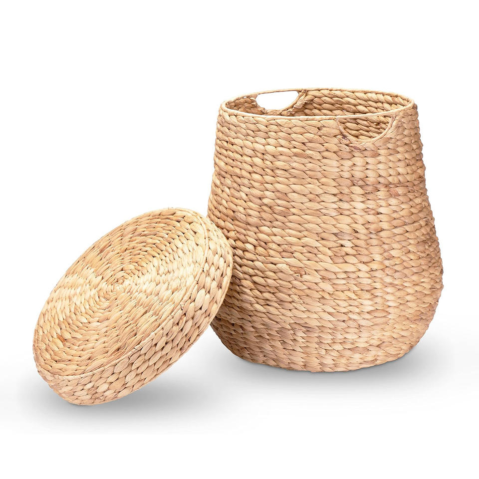 Braided laundry basket with lid water hyacinth bin good quality sustainable storage baskets