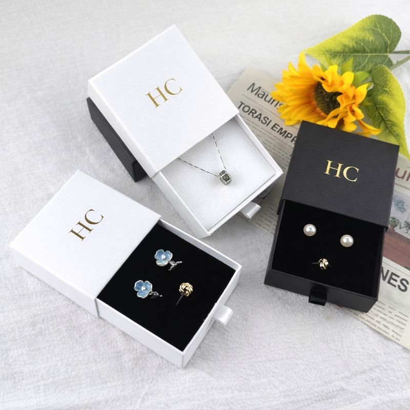 Brand Jewelry Set Box Luxury Rigid Drawer Jewelry Gift Box with Ribbon Handle Suede Insert Foil Stamping Custom Logo Wholesale