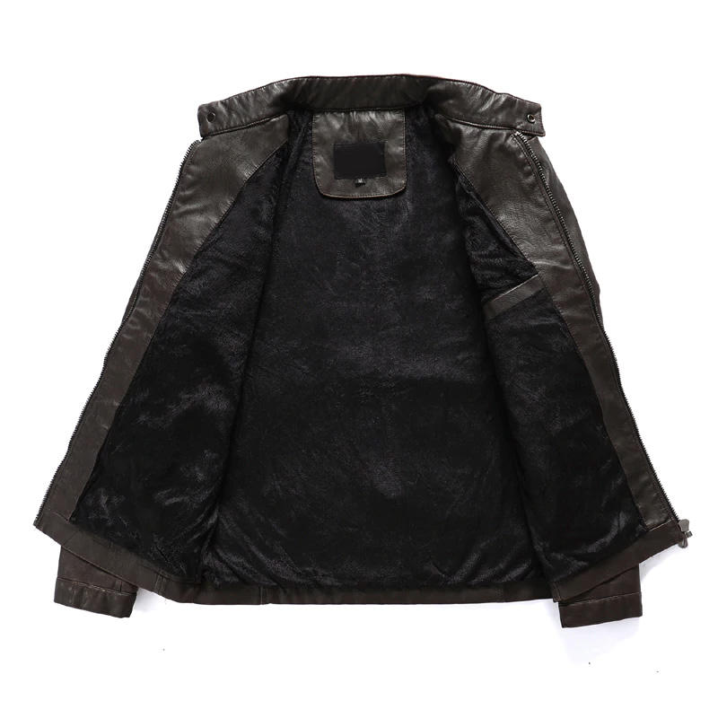 Brand New 2026 Spring Men's Loose Motorcycle Synthetic Leather Jacket with Brown Velvet Lining Windproof & Waterproof