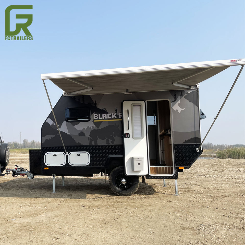 Independent Suspension Offroad Camping Trailers Mini Fiberglass Motorhomes with Movable Function and Tent Support for Campers