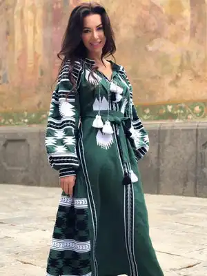 Brand New Bohemian Casual Dresses for Women Beautifully Embroidered Vyshyvanka Ukrainian Linen Dress Full Sleeves Long Vestido
