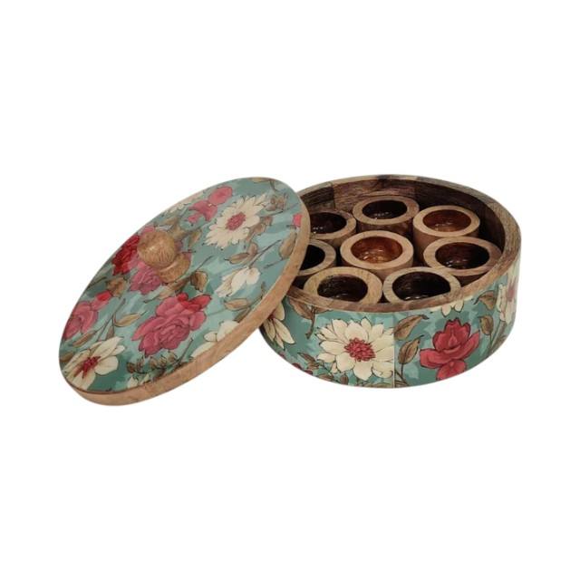Brand New Design Wooden Blue & Red Floral Print Masala Box