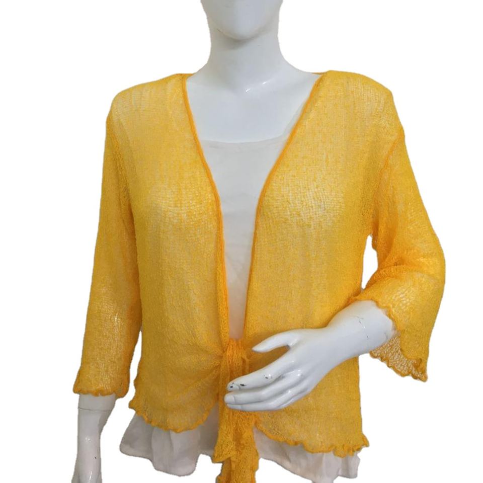 Brand New Elegant One Size Ladies Cardigan Bow Front Net Shrug Feathers Pattern Print Office Lady Western Formal Bali Top 8-18