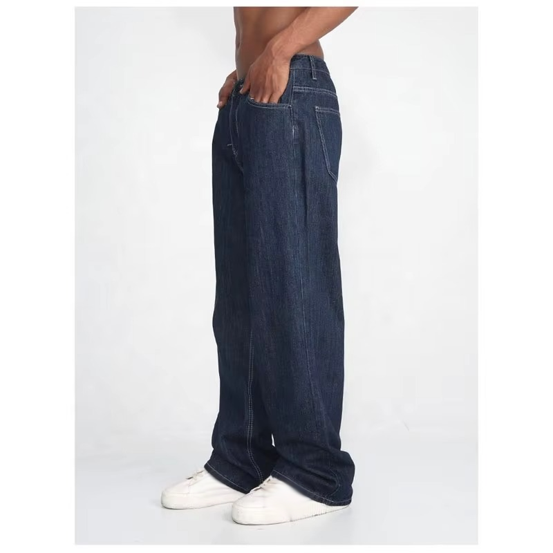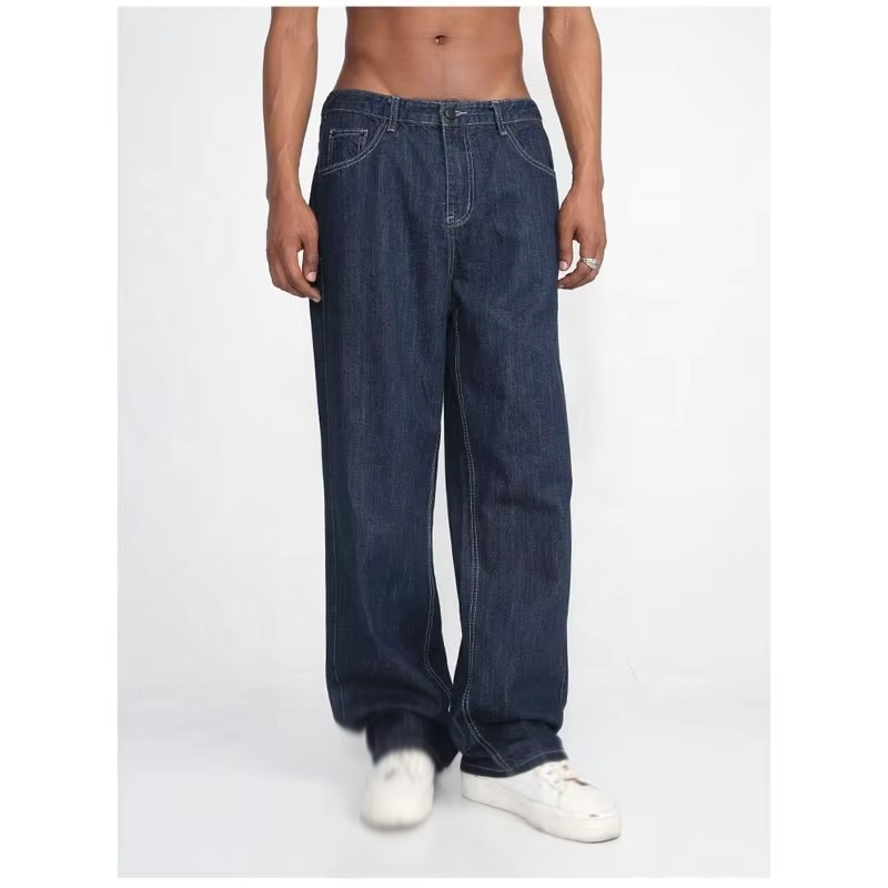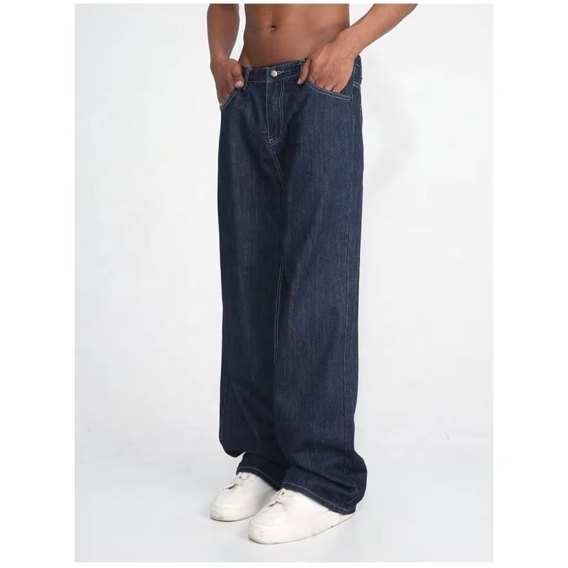 Brand New Men's Vintage Denim Jean Pants Summer Spring American High Street Trendy Loose-Fitting Straight Leg Washed 3D Solid