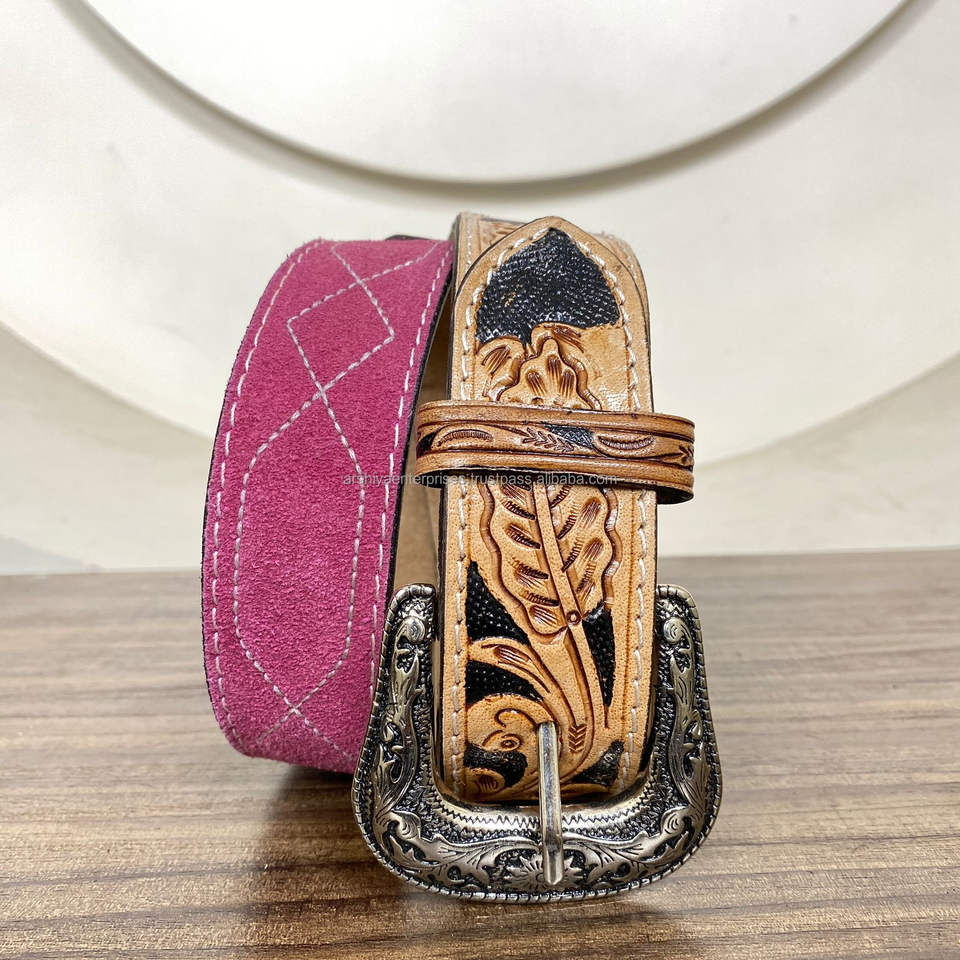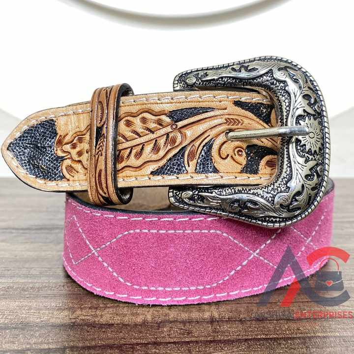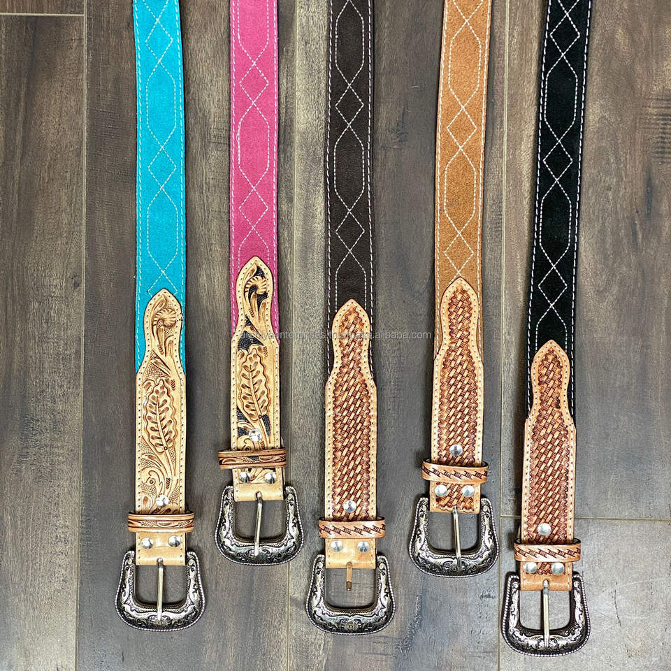 Hand Tooled Suede Leather Boot Stitch Belts