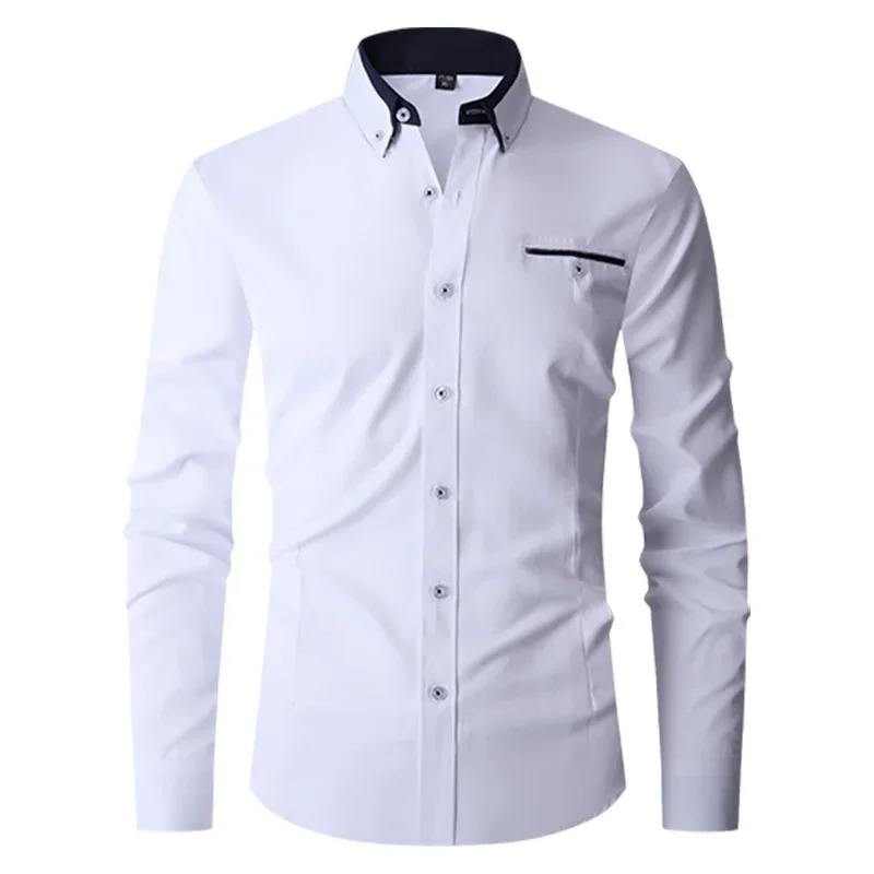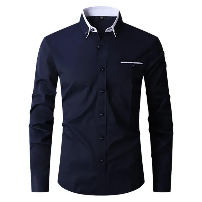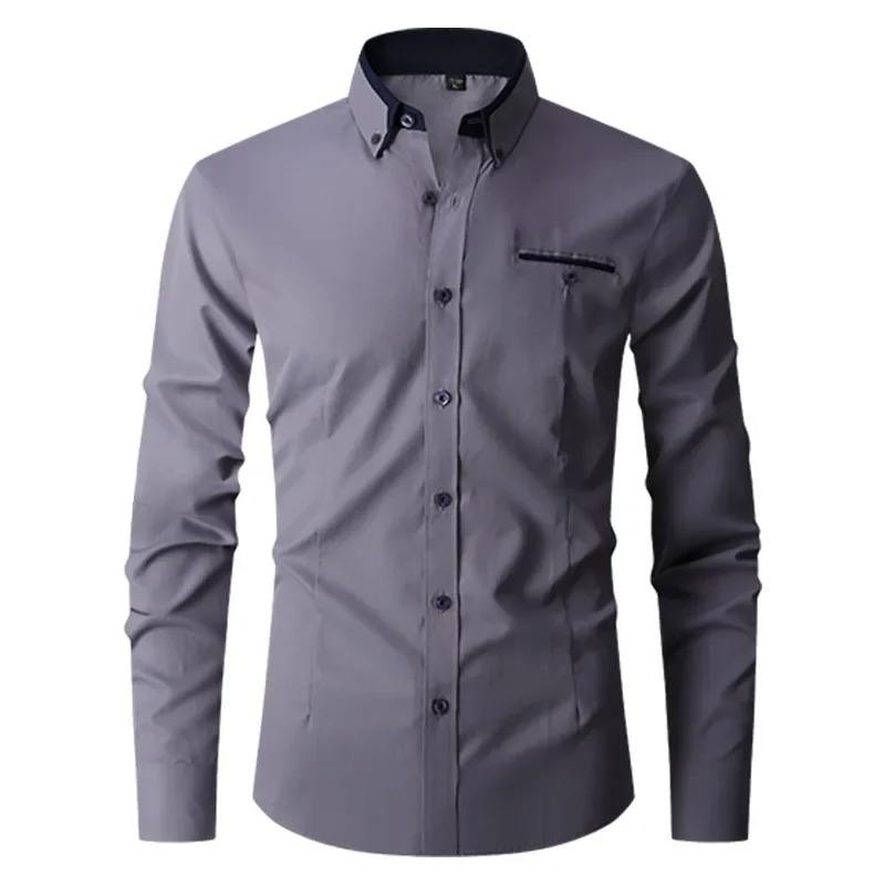 Brand New Slim Fit Men's Shirts Long-Sleeved Satin Stand Collar Breathable Yarn Dyed for Spring Formal Business Casual Style