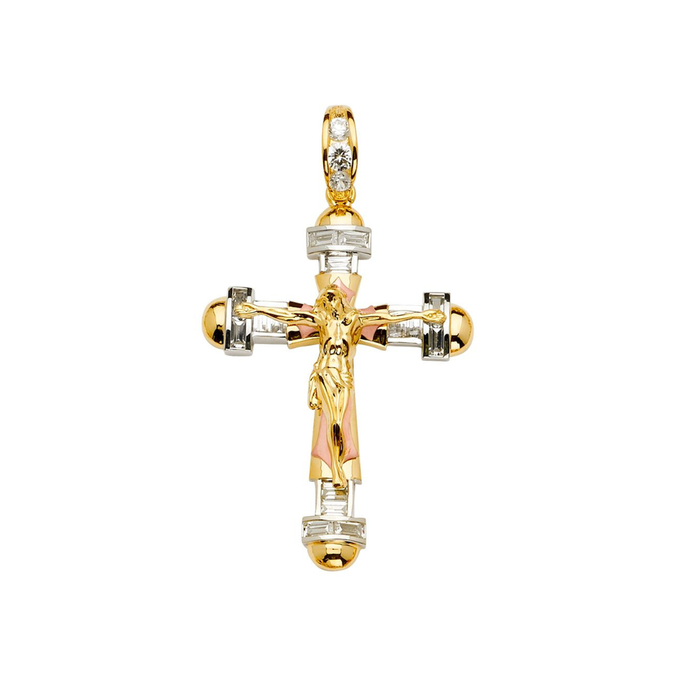 Brand New Three-Tone Plated Crucifix Cross Pendant Tricolor Gold Featuring Diamond Mainly Made Metal Christian Fancy Children