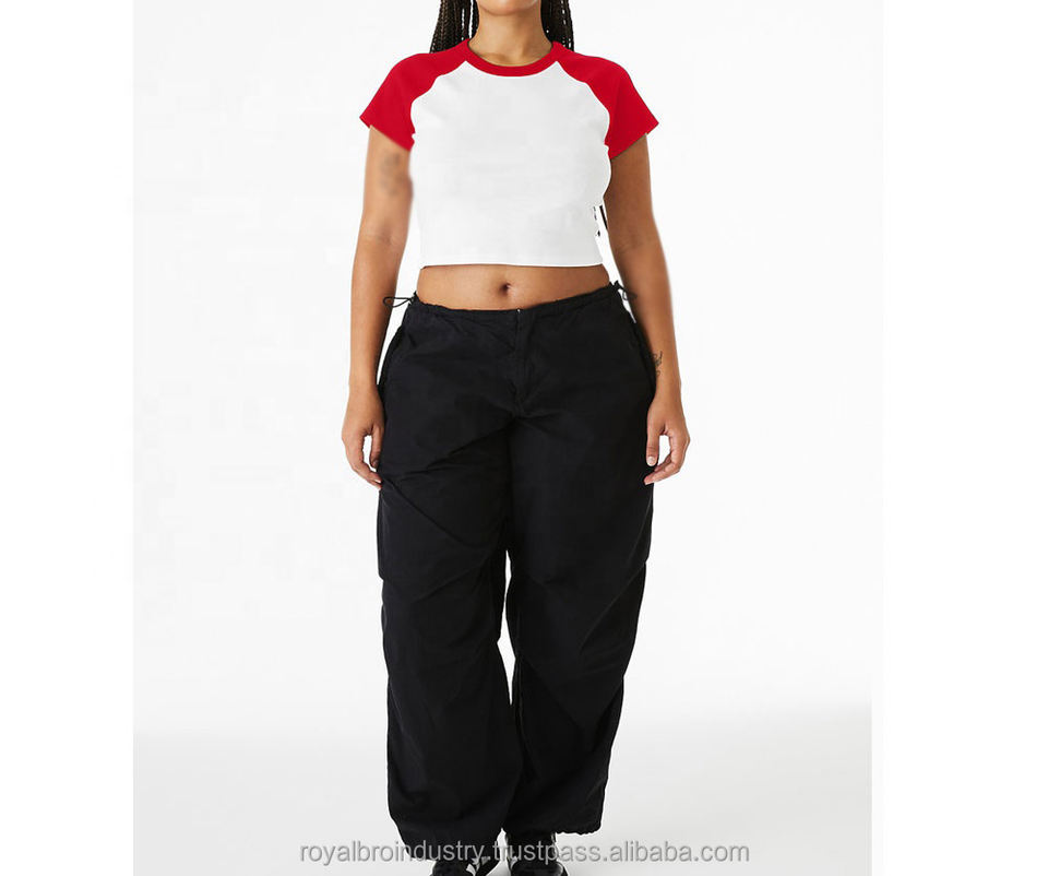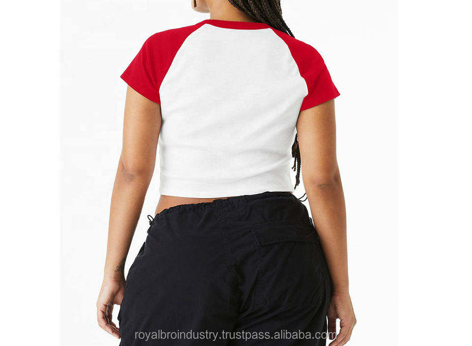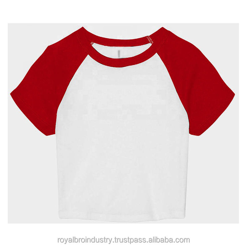 Brand New White Red Crop Tops Rib Raglan Baby Tee Classic Baseball Style Cap Sleeves with Breathable Cotton t Shirts