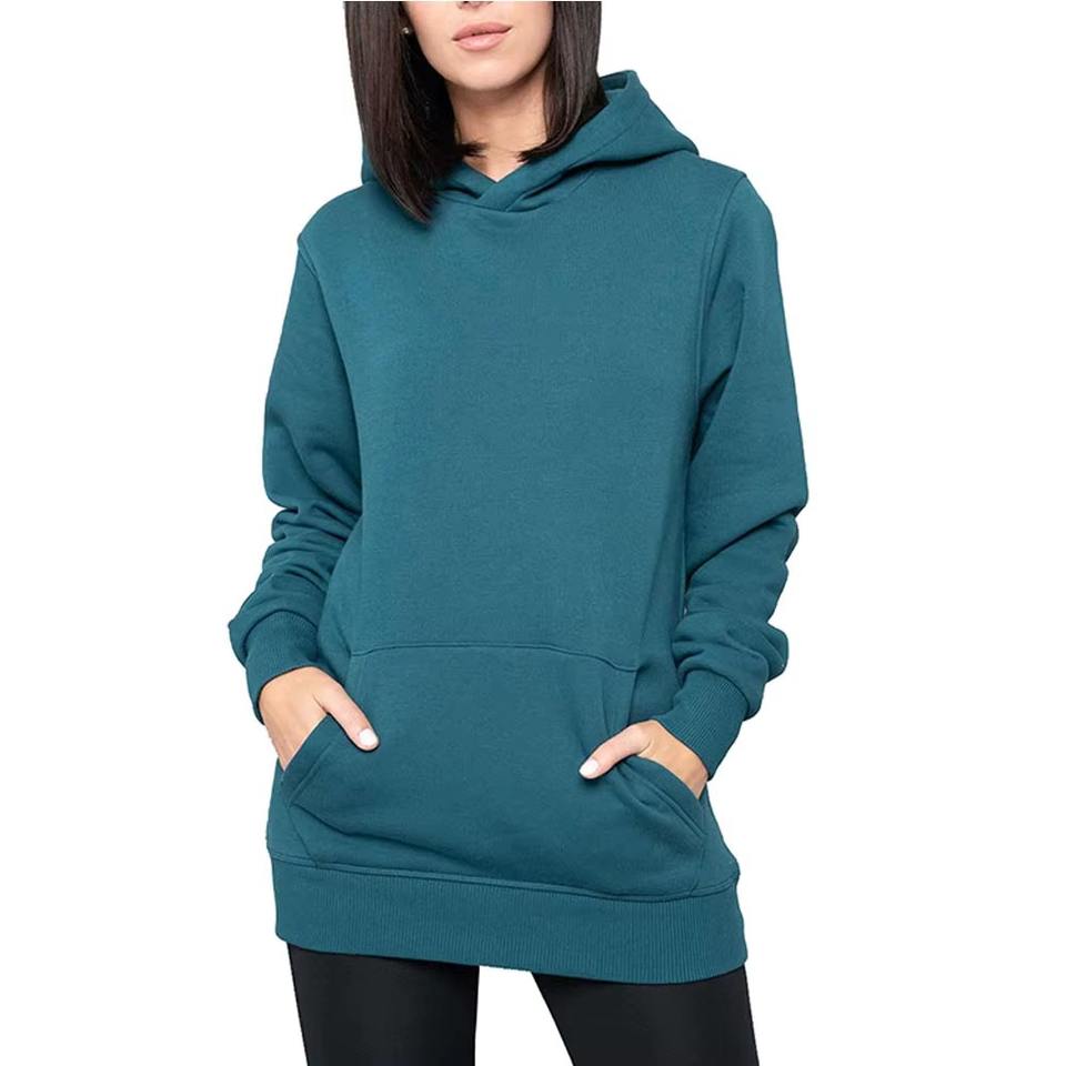 Brand Sourcing Women Winter Long Hoodie Trendy Casual Streetwear Velour Front Logo Soft Warm Fabric Sweatshirt