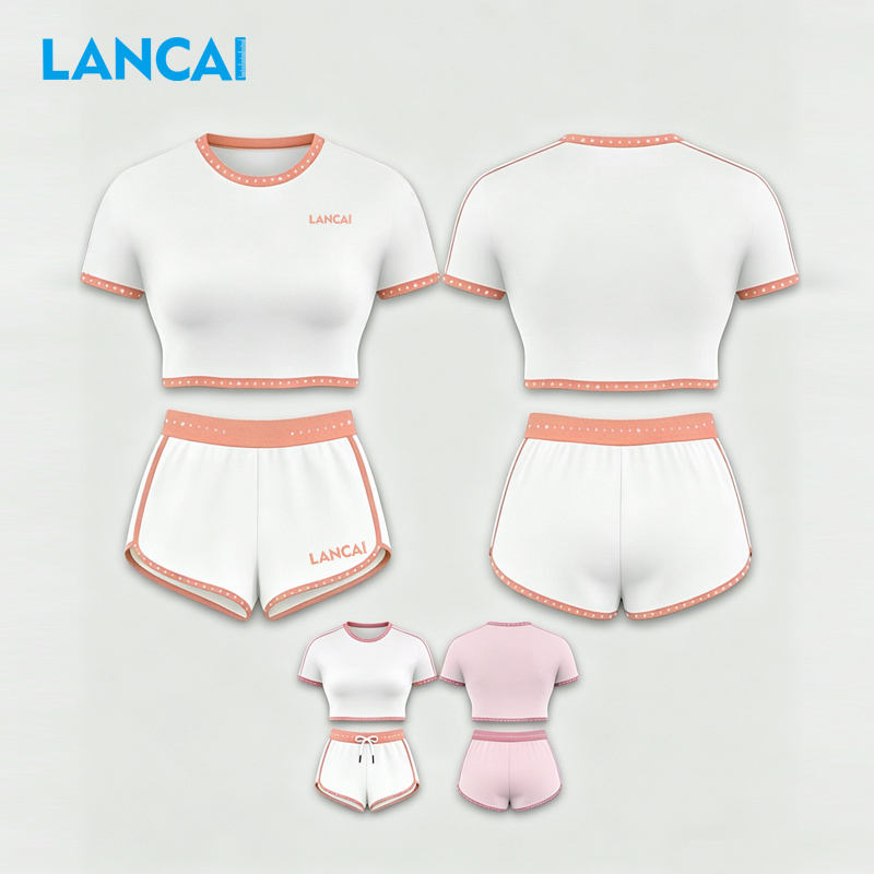Brand Style Design Manufacturers Custom Y2k Clothing Color Blocks Short Sleeve and Shorts Loungewear 2 Piece Set Women Summer