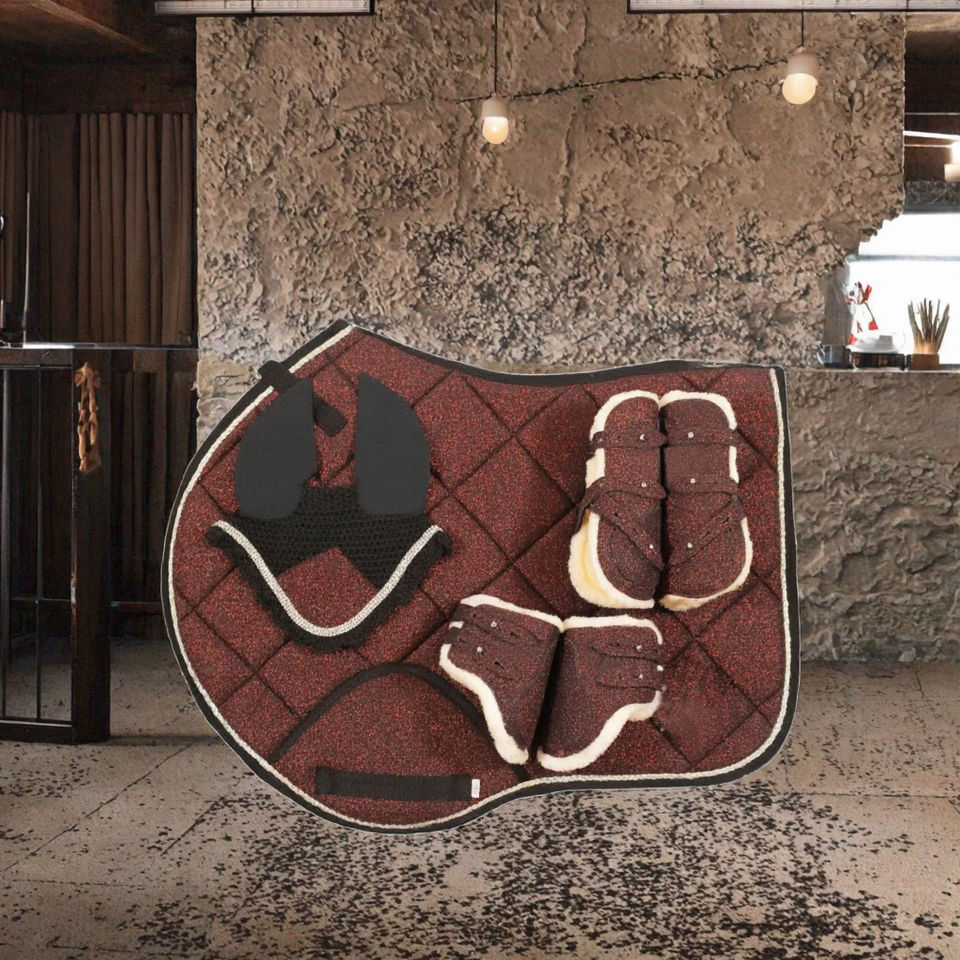 Brand Zone Custom Glitter Equine Saddle Pads Horse Riding Equestrian Equipment Wholesaler Supplier Low MOQ Split Boot Ear Bonnet
