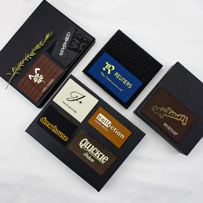 Brand logo woven label personalized woven glass bottle label for bags