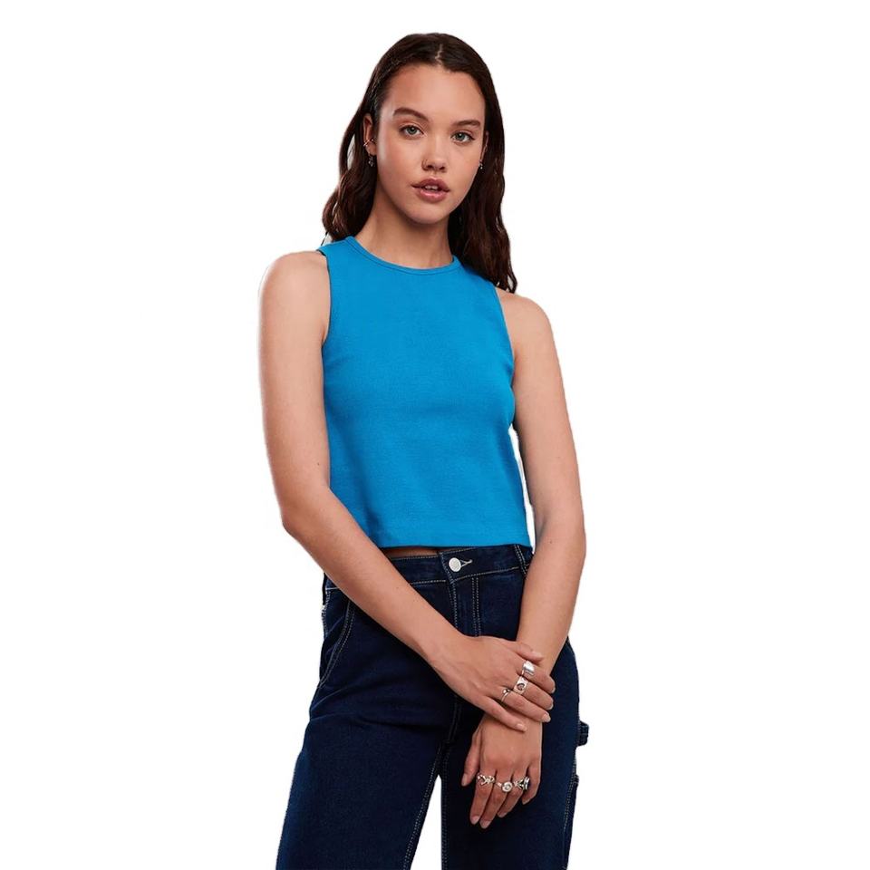 Brandable Factory Price Ribbed Cotton Crop Tank Top for Women Sleeveless Round Neck Custom Style Casual Summer Wear Ladies Tops