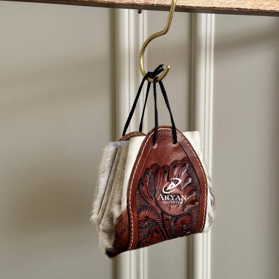 Branded Hair on Tooled Leather Coin Purse Cowhide Leather Drawstring Pouch Western Medicine Pouch for Keys Card Gift for Him/Her