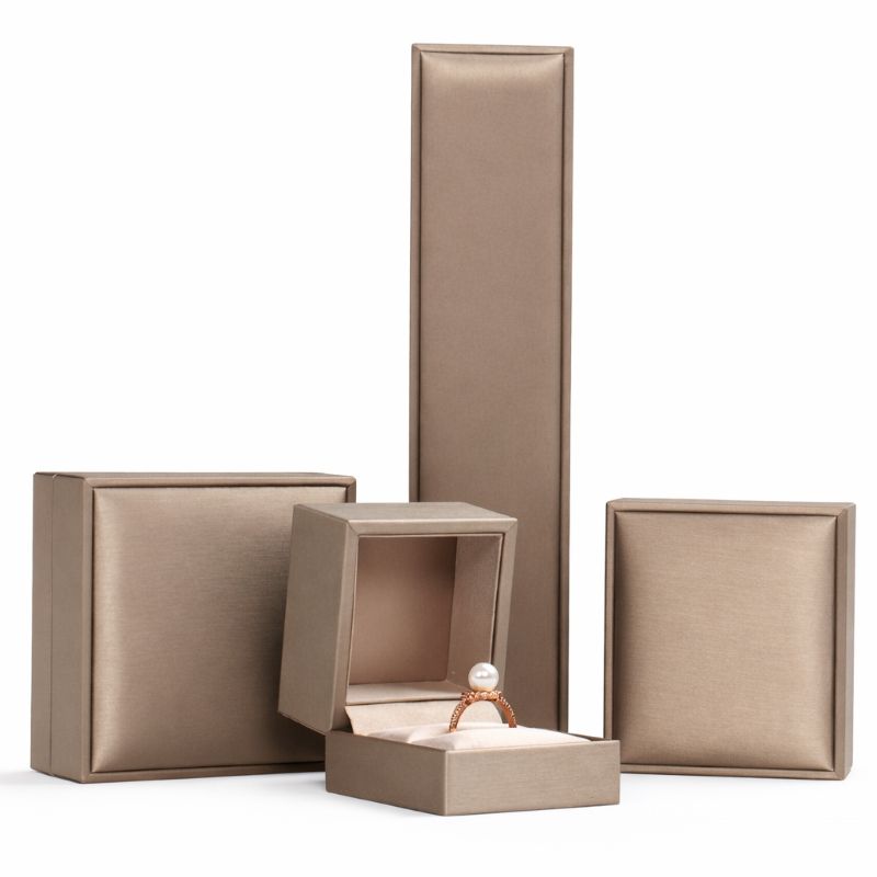Branded Jewelry Set Box Luxury Custom Leatherette Jewelry Box Suede Insert Embossing Custom Logo Brand Positioning Packaging
