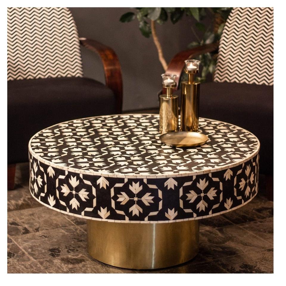 Branded Quality Handmade Black and White Strip Bone Inlay Bedside Stool Coffee Table Made of Wood for Decoration From India.