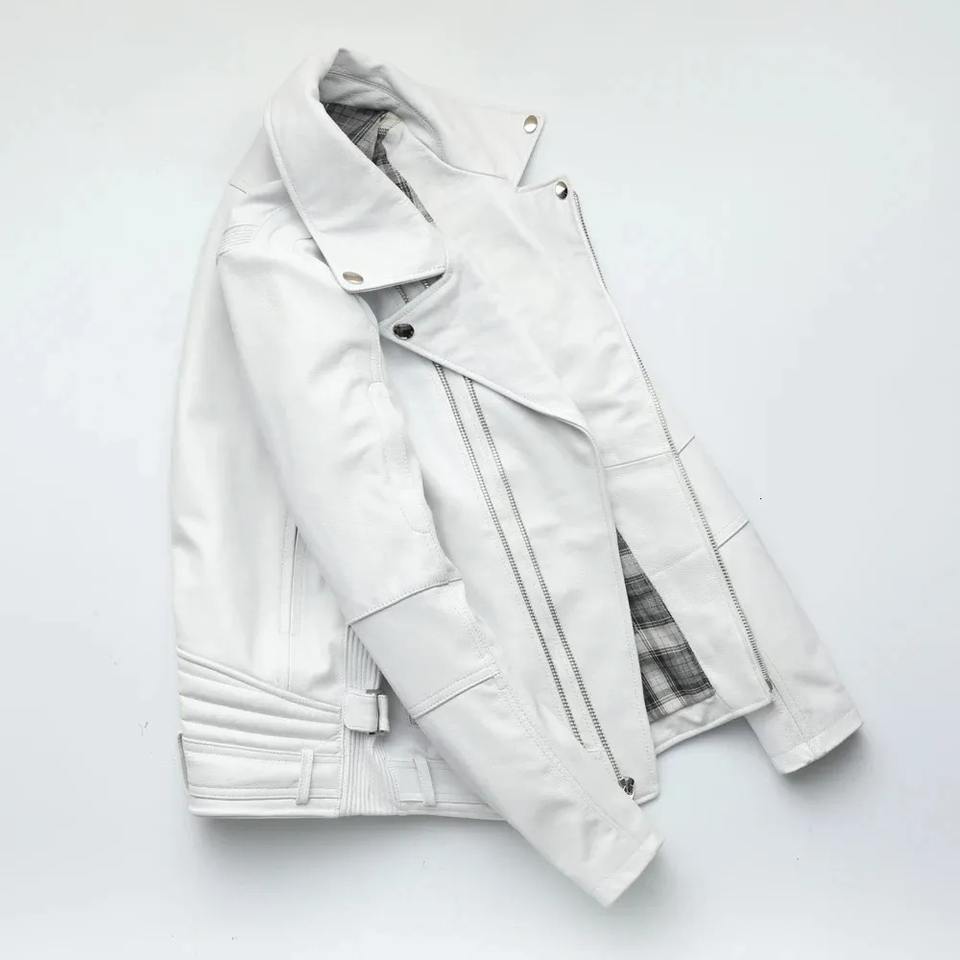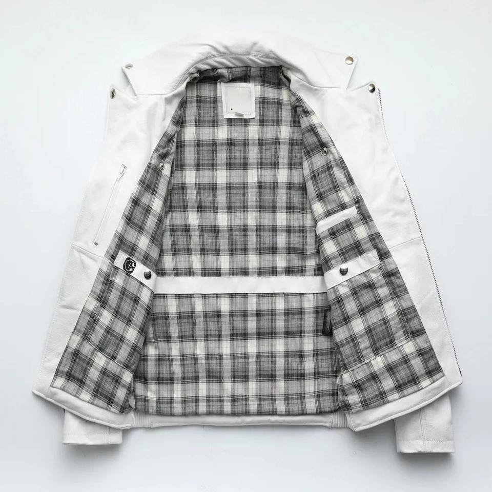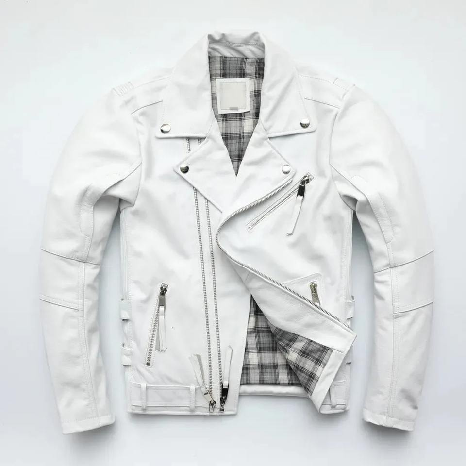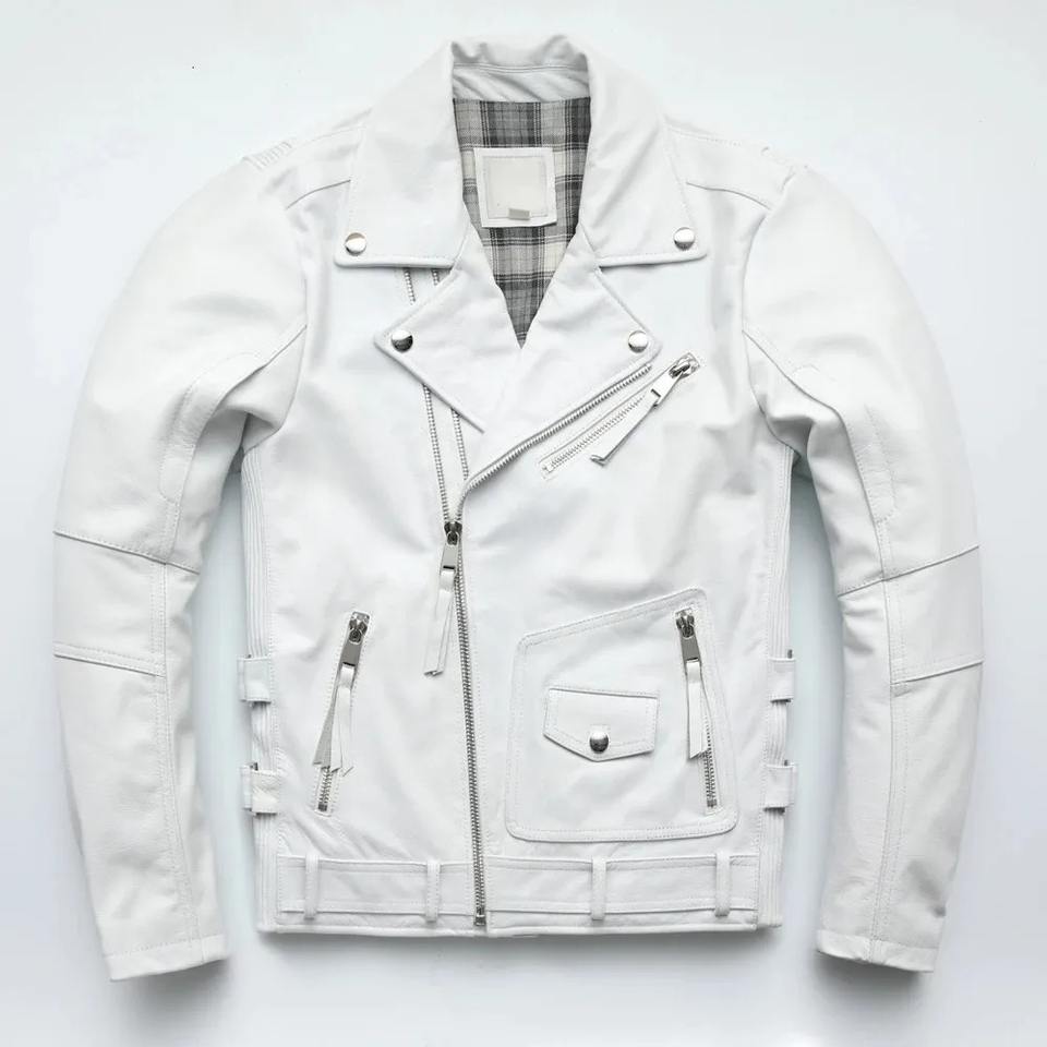 White Style Design Men's Leather Jacket Professional Made Genuine Cowhide High Quality Light Weight Winter Season jacket