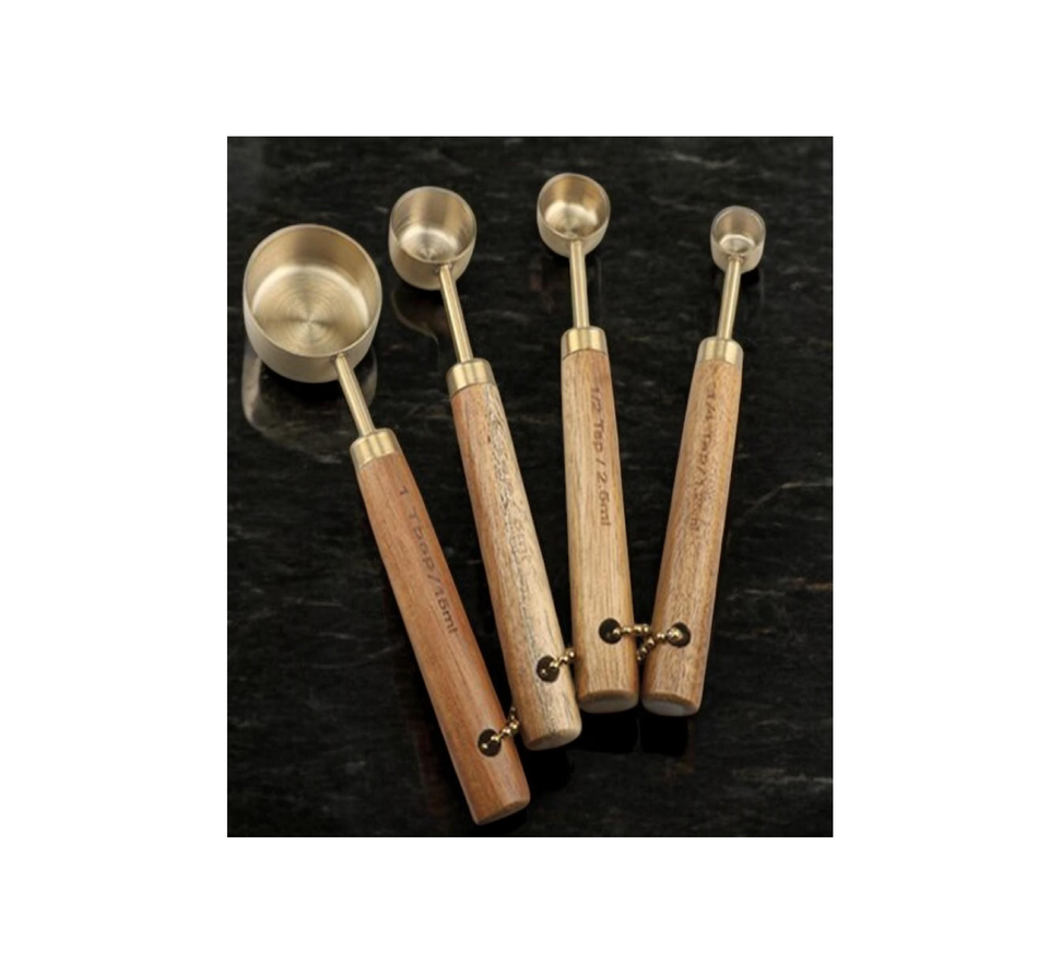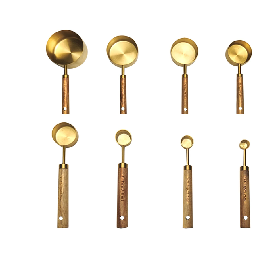 Brass Acacia Wood Measuring Cups and Spoons Tea Measuring Spoon Beech Wood Coffee Bean Measuring Spoon