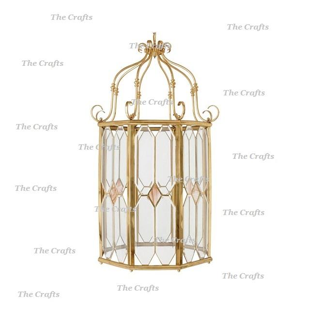 Brass And Glass Hanging Lantern With Exclusive Quality Gold Color Hanging Lantern For Home Decor Accessories