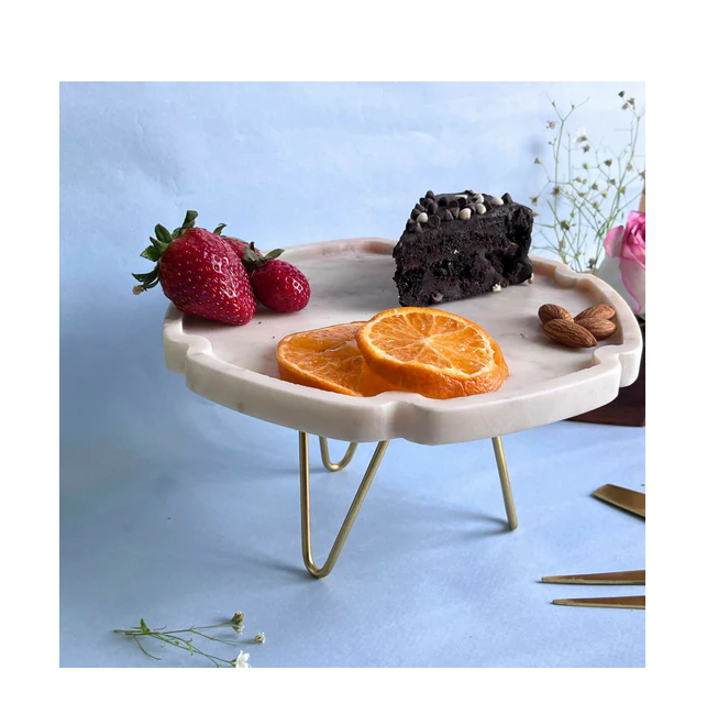 Brass And Marble Cake Stand Hotel Restaurant White Marble Cube Dessert Display Marble Cake Stand