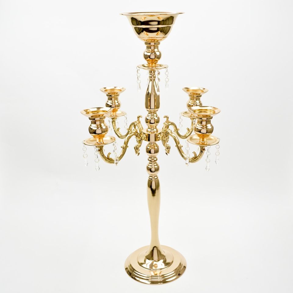 Brass Antique Candelabra Handcrafted Vintage Home Decor 5 Arms Weddings Candle Stand Centerpiece Available at Low Price.
