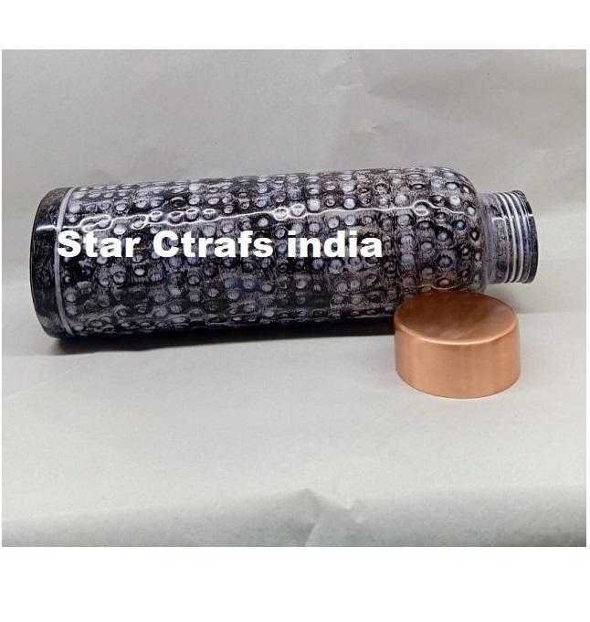Brass Antique Finished Copper Water Bottle Hot Seller Hammered Design with Unique Similar Lid Base Low Price Metal Bottles Avail