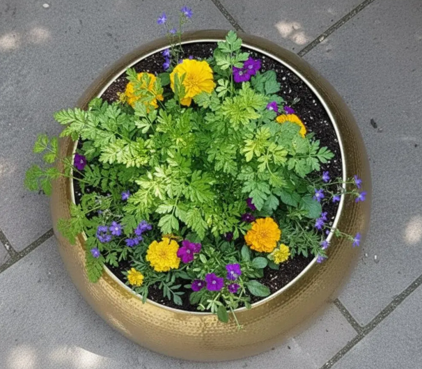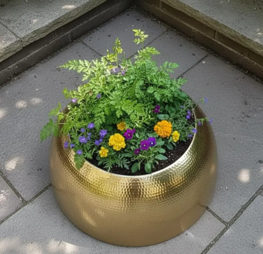 Brass Antique Finished Metal Pure brass Home Garden Flower Pot and Planter Round Shape Large Copper Planter