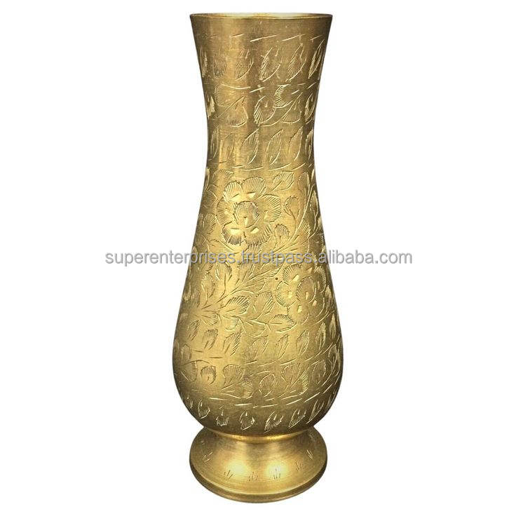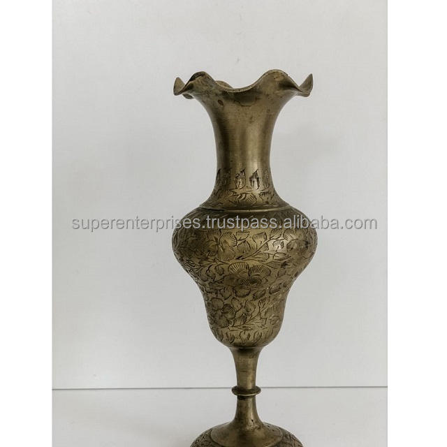 Brass Antique Finishing Hand Carving Flower Vase Fancy Flowers Arrangement Vase Home Accent Home Trendy Planters Flower Pots