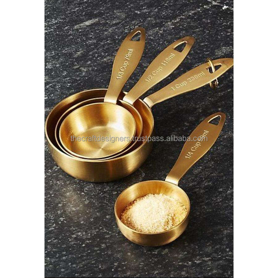 Brass Antique Measuring Cups Set Wholesale Price Custom Measuring Cups Kitchenware Tool Metal Crafts Counting Cups With Logo