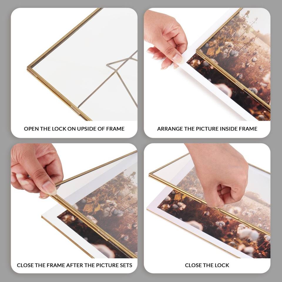 Brass Antique Photo Frame / Recycled Glass & Brass Portrait Photo Frames With Stand A4 / 21 x 29.7 cm