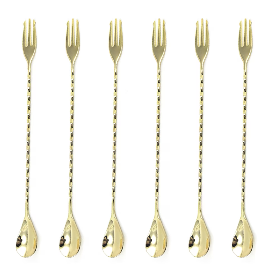 Brass Bar Spoon Twisted Handle Bar Used Brass Spoon & Fork Bar Accessories Gold Spoon Size 30cm For Bar Cocktails