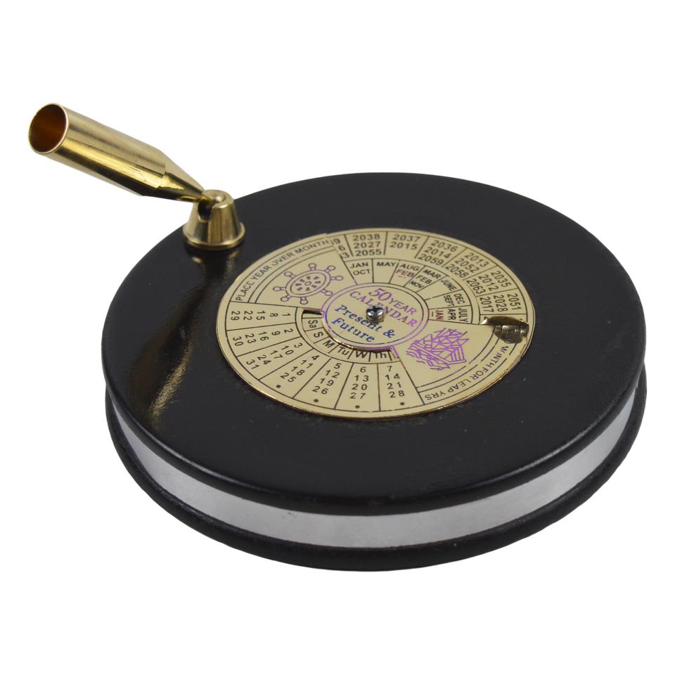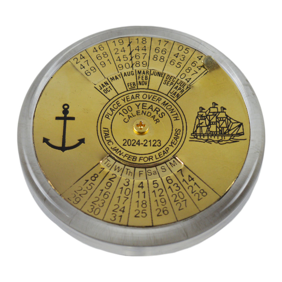 Brass Calendar Compass Shiny Mirror Polish 100 Years Nautical Calendar Marine Traveling Item Paper Weight Gift Antique Perpetual